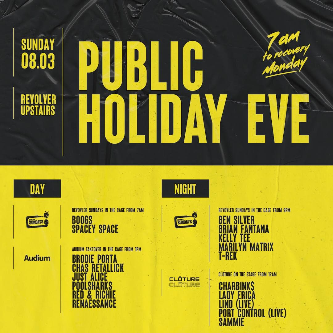 Public Holiday Eve — Audium, Clôture & Revolver Sundays