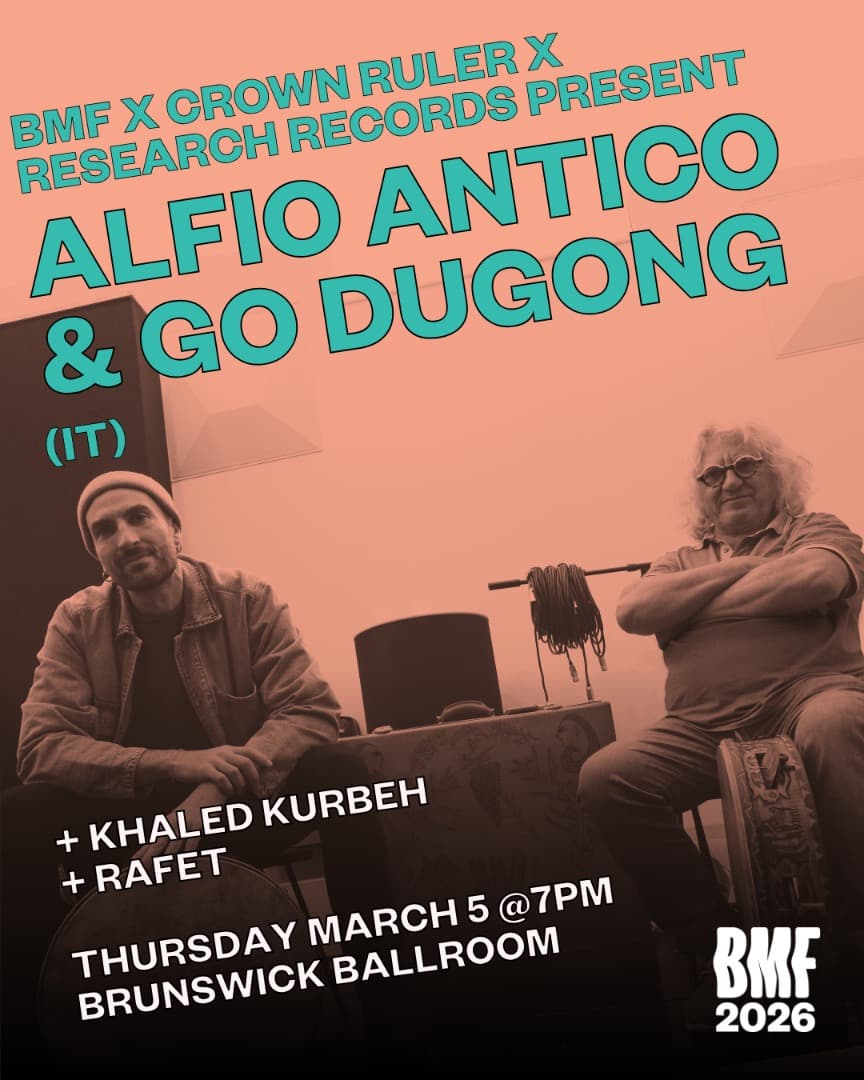 Italian trio Alfio Antico & Go Dugong expand the realm of folk music with their album "La Macchia" – meaning the meeting point between past and future. Berlin-based Syrian composer Khaled Kurbeh maps migration and memory through classical piano and contemporary electronics. Melbourne's Rafet returns after four years with ambient, jazz and drone, in his first live show since releasing on Research Records. Ex Ponto on the decks between sets.